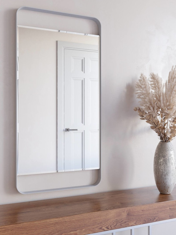 Зеркало «Inform». Артикул GMZ-05-1/2/3 Модель представленного зеркала в металлической раме с закруглёнными углами в последнее время пользуется повышенным спросом среди дизайнеров интерьеров. Секреты просты – изысканная лаконичная форма и безупречное качество зеркального полотна с фацетом. Прямоугольная форма является классикой. К тому же зеркало можно располагать как вертикально, так и горизонтально. При этом фацет придаёт зеркалу особый шарм благодаря интересным бликам света по периметру. Модель универсальная, способна поддерживать как классические стили интерьеров, так и авангардные.Характеристики:– габаритные размеры зеркала – 1000х500х40; – профиль рамы тонкий – 4х40 мм, радиус закругления углов – R50; – вес – 10 кг; – устойчивая матовая порошковая окраска; – цвета – золотой, чёрный, белый; – саморезы для крепления к стене в комплекте; – гарантия – 1 год.